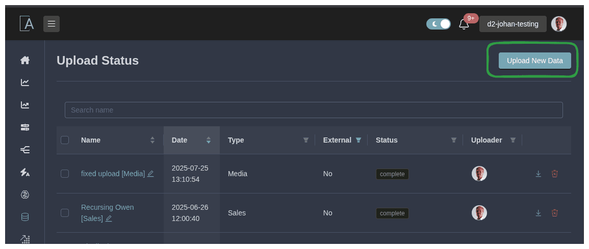 From the uploads page, click Create a New Dataset using your uploaded files.